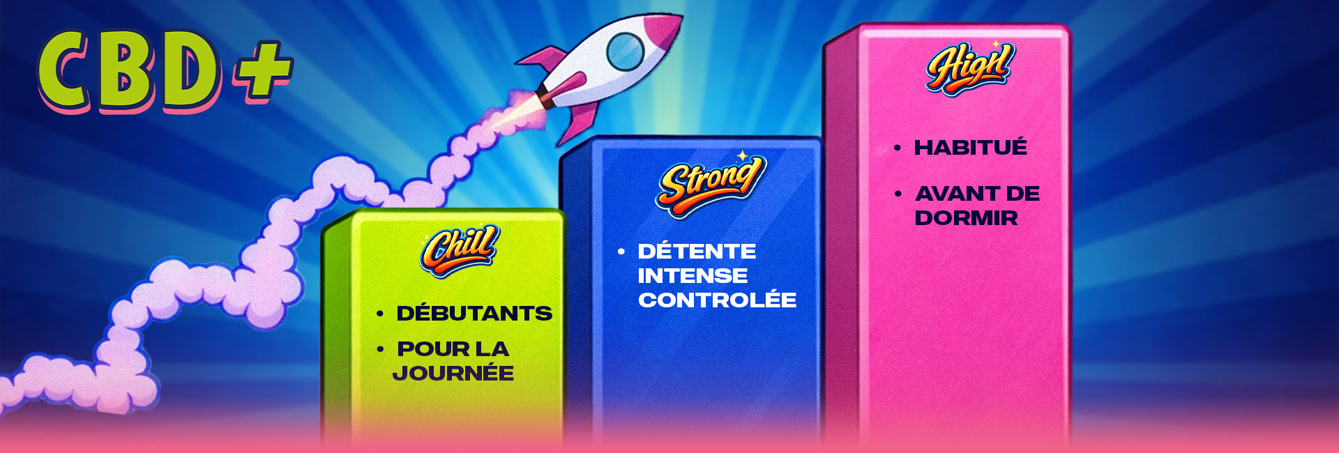 L’objectif du CBD+ est d’offrir une détente plus rapide, un apaisement plus profond et des effets plus nets, tout en restant naturel et légal (THC < 0,3%).